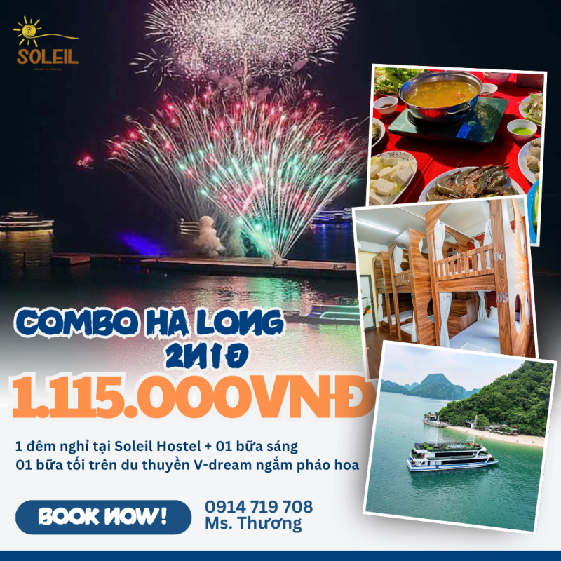 Bạn đang ấp ủ một chuyến đi Hạ Long hè này nhưng còn băn khoăn về chi phí? Bạn muốn tận hưởng trọn vẹn vẻ đẹp di sản thế giới mà không lo “cháy túi”? Hãy sẵn sàng khám phá Combo Hạ Long hot nhất mùa hè này – combo du lịch 2 ngày 1 đêm kết hợp nghỉ dưỡng tại Soleil Hostel và trải nghiệm du thuyền 5 sao Vdream, đảm bảo “rẻ quá!” đến mức ai đi về cũng phải trầm trồ khen ngợi!