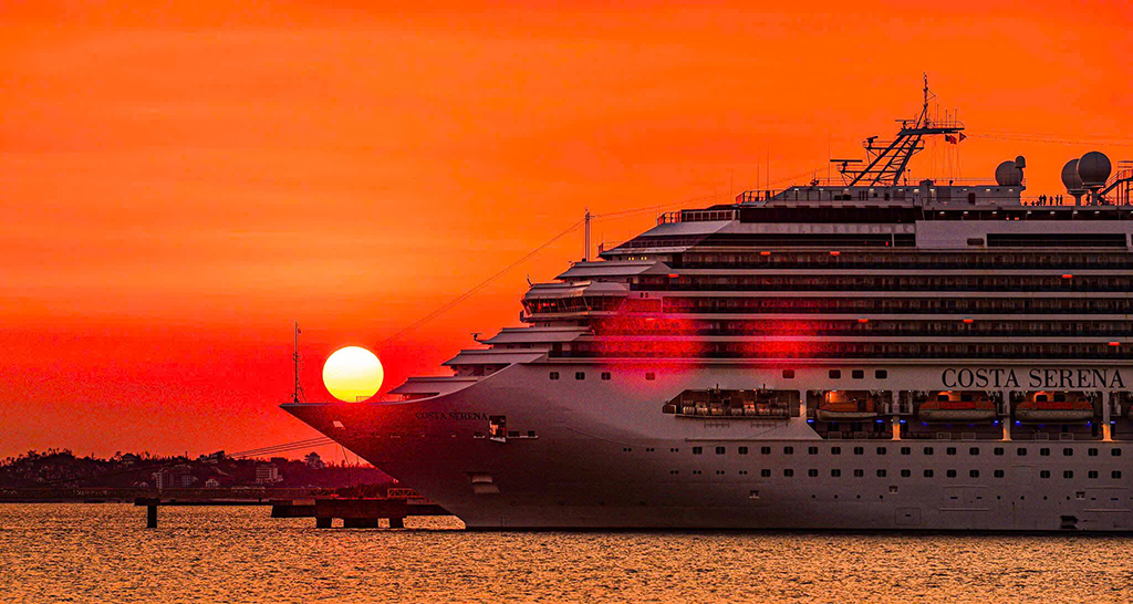 Bạn sẽ bắt đầu hành trình của mình vào lúc 18h00 tại Bến Tàu Khách Quốc Tế Hạ Long. Đây là thời điểm lý tưởng để chiêm ngưỡng hoàng hôn dần buông trên Vịnh, những tia nắng cuối cùng của ngày vàng óng ánh trên mặt nước, tạo nên một khung cảnh tuyệt đẹp.
